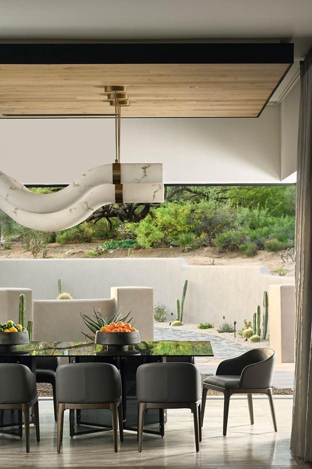 Limestone and travertine stones, honed to matte finishes, resonate with Sonoran Desert palettes of sandy beiges, mineral grays, and subtle ivories, making them ideal for flooring, countertops, and feature walls in luxury Paradise Valley residences. Their natural veining provides subtle variation that complements board-formed concrete and plaster surfaces, while high compressive strength—often exceeding 10,000 psi for select limestones—accommodates high-traffic demands without compromising aesthetics. During material selection, teams evaluate porosity ratings and sealing protocols to mitigate moisture ingress from indoor-outdoor pools or courtyards, a common feature in Desert Mountain estates. Builders appreciate JSF Design’s construction drawings that detail stone layout patterns, expansion joints, and integration with retractable glass walls, reducing change orders by up to 20% in complex remodels. These applications extend material continuity outdoors, blurring boundaries and enhancing market appeal for real estate professionals. For current insights on organic textures in flexible spaces, see 2026 interior design trends.